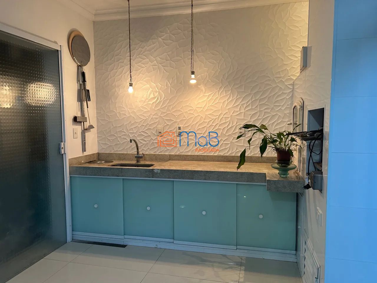 A cozinha é um sonho para os amantes da culinária! Com portas de vidro dobráveis que otimizam o espaço e bancadas de nanoglass branco, ela conta com armários com portas de vidro e uma pia com 3 cubas. Equipamentos gourmet garantem praticidade no dia a dia.