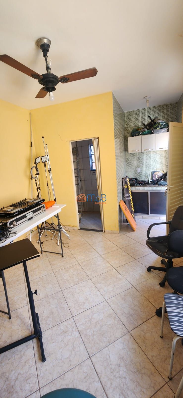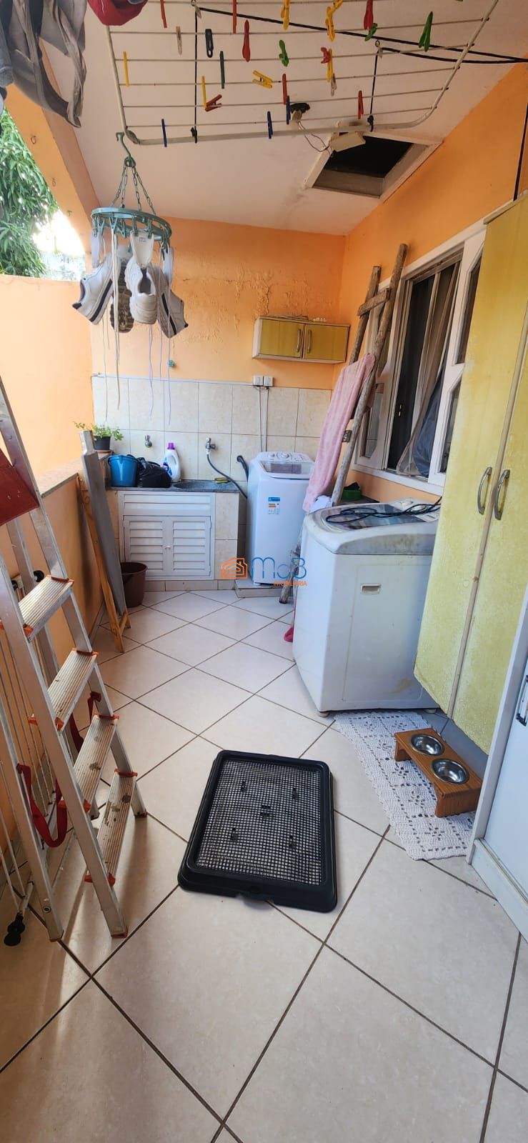 A parte superior conta com uma cozinha maior, área de serviço, sala de estar e jantar, banheiro, 02 quartos.